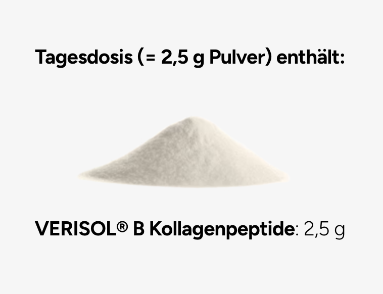 • Patentierte Bioaktivität: Mit dem Markenrohstoff VERISOL® B – bioaktive Kollagenpeptide mit klinisch belegter Wirkung