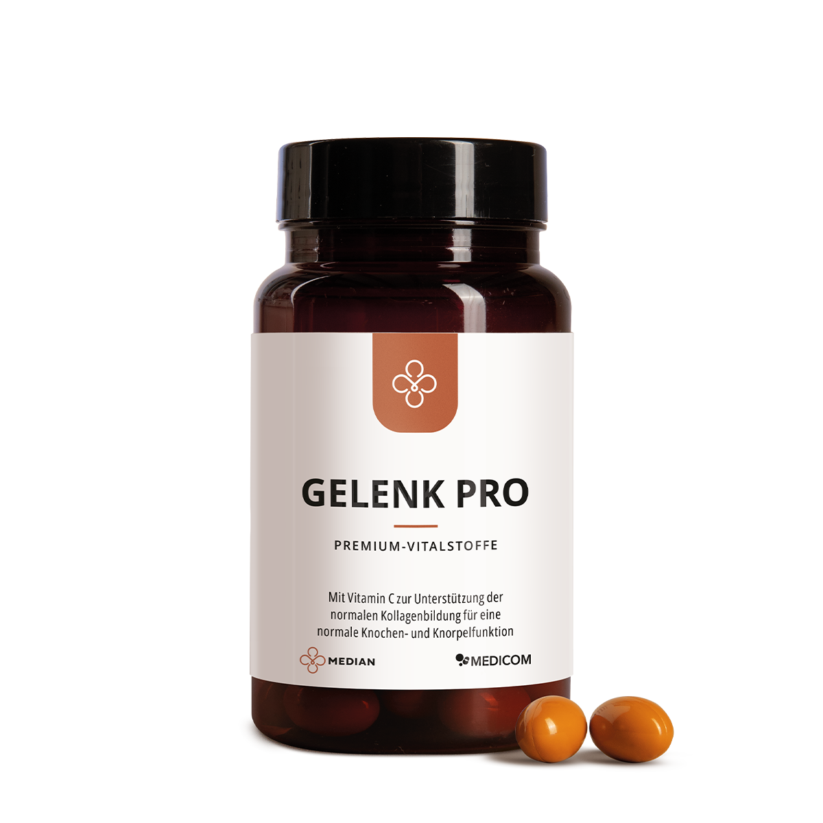 Ganz gleich, ob Sie schmerzenden Gelenken vorbeugen wollen oder darunter leiden: Median Gelenk Pro setzt auf aktuelle wissenschaftliche Erkenntnisse und eine Kombination hochwertiger Inhaltsstoffe. Weihrauch (Boswellia serrata) mit seiner wertgebenden Weihrauchsäure (Boswelliasäure) überzeugt durch seine anti-inflammatorischen Eigenschaften. Hanföl wiederum enthält ein ausgeowgenes Verhältnis an lebenswichtigen mehrfach ungesättigten Omega-3- und Omega-6-Fettsäuren, die neben anderen guten Effekten auf Ihren Organismus die Synthese von entzündungshemmenden Prostaglandinen begünstigen. Ergänzt werden diese hochwertigen pflanzlichen Inhaltsstoffe durch Curcuma, einen weiteren Naturstoff in seiner modernsten Form in Mizellenstruktur mit optimaler Bioverfügbarkeit der wertgebenden Curcuminoide (darunter Curcumin) sowie Vitaminen und Mineralstoffen. Darunter Vitamin D3 und Calcium, die zum Erhalt normaler Knochen sowie zur normaler Muskelfunktion beitragen und Vitamin C zur normalen Kollagenbildung für eine normale Knochen- sowie Knorpelfunktion, die Grundlage für belastbare Knorpel und stabile Knochen.