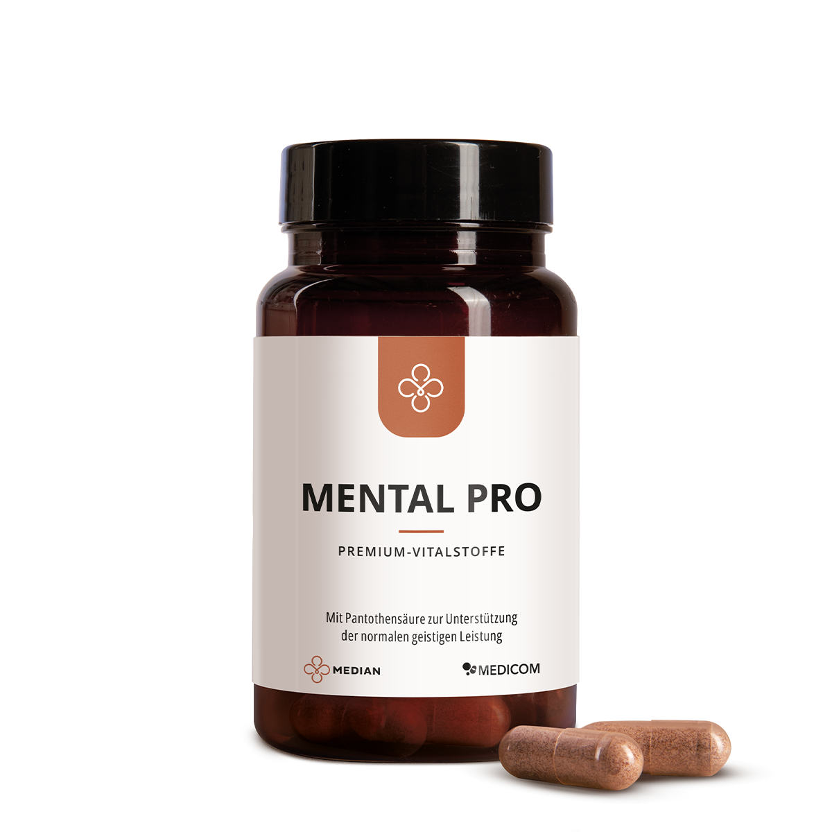 Lion’s Mane enthält eine Vielzahl bioaktiver Substanzen – besonders hervorzuheben ist Beta-Glucan, das als spezieller Ballaststoff das Immunsystem, den Stoffwechsel, die Darmgesundheit und das Gehirn unterstützt. Da der Darm mit dem Gehirn eng vernetzt ist, kann eine stabile Darmflora auch die kognitive Funktion positiv beeinflussen. In Median Mental Pro ist der Pilz auf 18 % Beta-Glucan standardisiert.